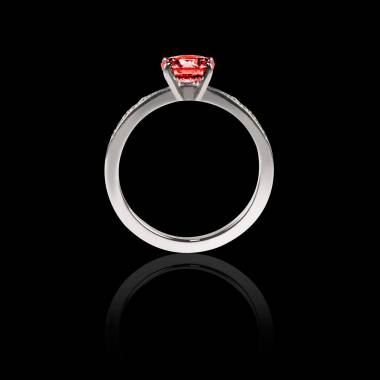 Bague en or 18 K (2,8 g), pierre centrale rubis (1 carat; 1,5 carats, 2 carats) et pavage diamant (0,12 carat) ou rubis (0,13 carat) ou émeraude (0,09 carat) ou saphir bleu (0,13 carat) ou saphir rose (0,13 carat) ou diamant noir (0,12 carat)
