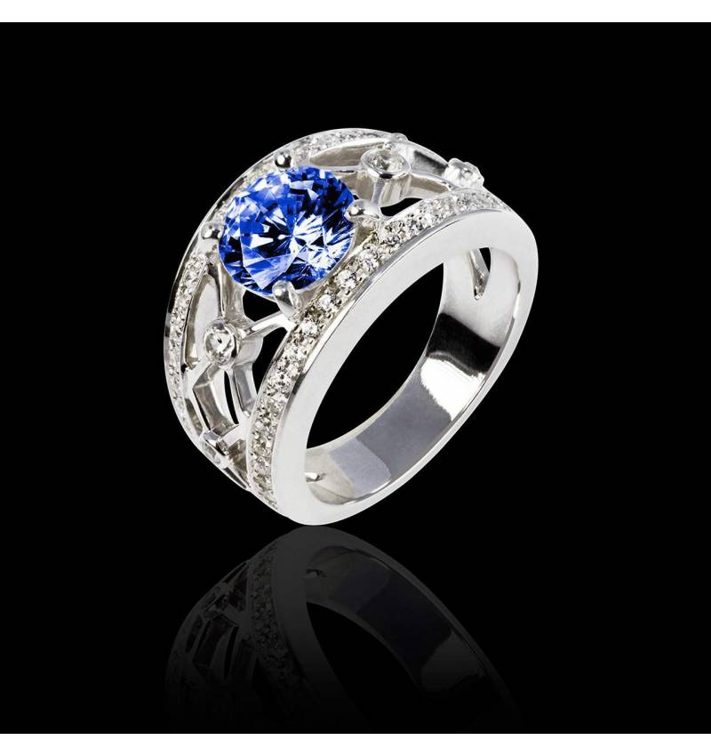 Bague Regina Suprema or 18 K pierre centrale saphir bleu à personnaliser. Cette bague existe également avec un saphir bleu forme émeraude