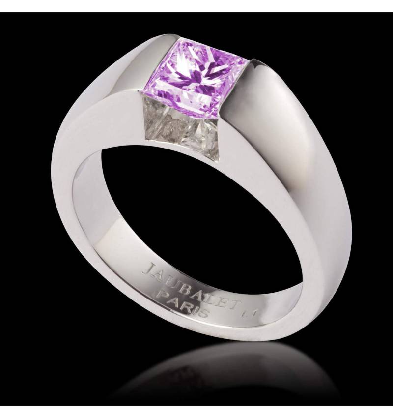 Bague Pyramide or blanc 18 K (6,6 g) saphir rose