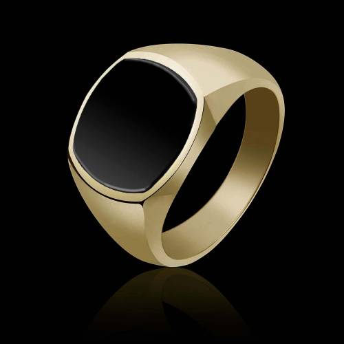Chevalière en or jaune 18K (11 g), gravure à la main sur Nicolo bleu clair, plateau 15*13 mm