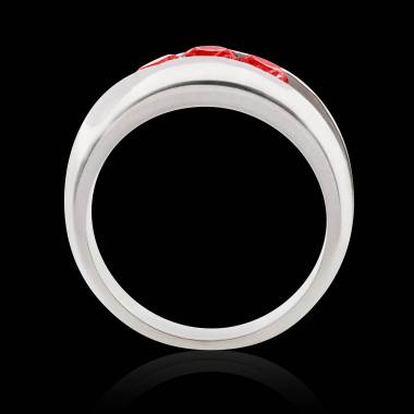 Bague en or blanc palladié 18K, or jaune 18K, or rose 18K et platine. Pavage diamant (3 pierres de 0.20 carat chaque), rubis (3 pierres de 0.23 carat chaque), émeraude (3 pierres de 0.17 carat), saphir bleu (3 pierres de 0.23 carat chaque), saphir rose (3 pierres de 0.23 carat chaque)