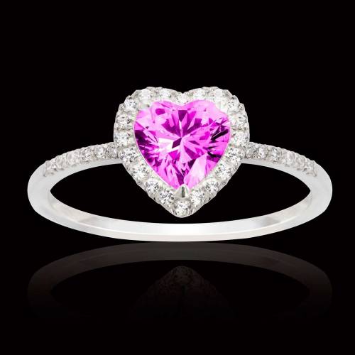 Bague en or 18K 2,66 g, saphir rose coeur, pavage diamants 0,20 carat ou diamant noir 0,20 carat ou rubis, 0,22 carat ou émeraude 0,17 carat ou saphir 0,22 carat.